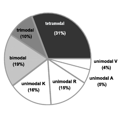 Stilurile de învățare cele mai ineficiente sunt stilul vizual cu 4% și stilul auditiv cu 5%. Urmează stilul scris / citit cu 15% și stilul kinestezic cu 16%. Mai eficiente sunt stilurile bimodale cu 19% și trimodale cu 10%.