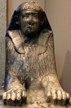 Imaginea reprezintă un mic sfinx, care are inscripționat numele faraonului.