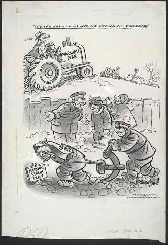 - Credeți că Block era favorabil planului Marshall? Argumentați pe baza desenului.