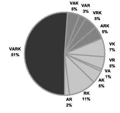 Stilurile de învățare VARK sunt: vizual, auditiv, citit/scris, kinestezic. Eficiența stilurilor de învățare sunt reprezentate în graficele următoare: